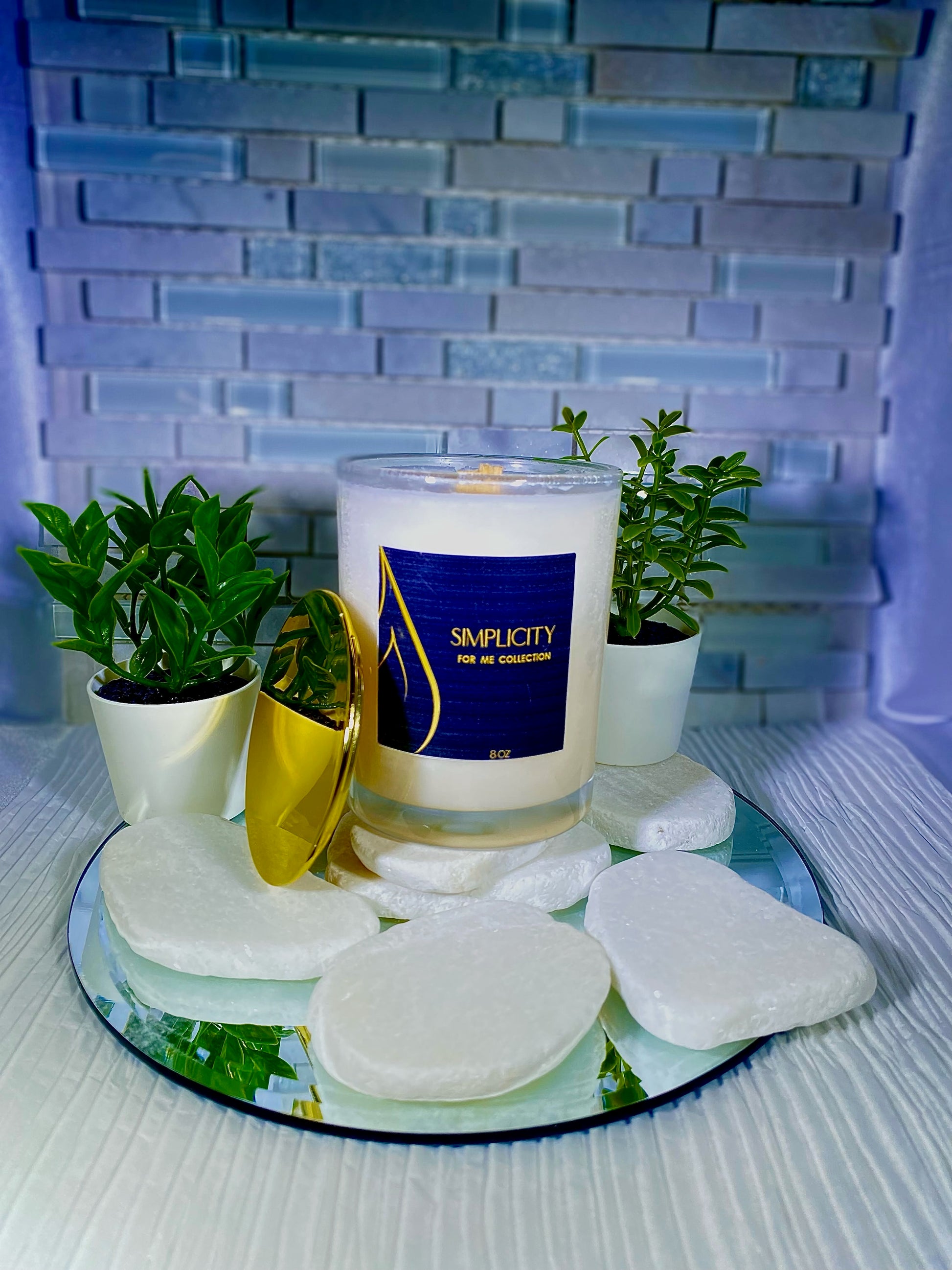 This candle is infused with a fragrance of lemongrass, patchouli and white tea. It brings a sense of calmness and balance that can uplift your day.